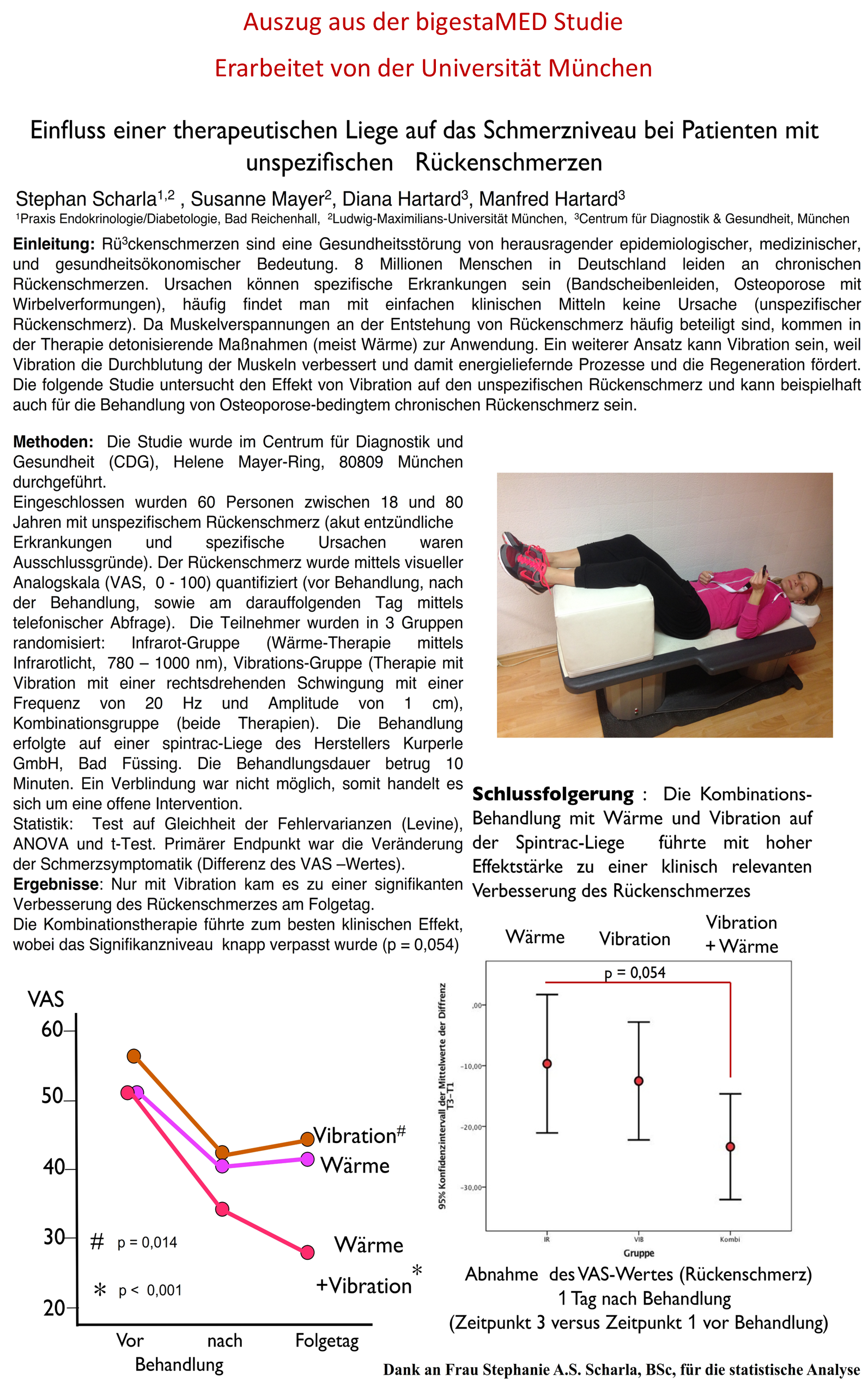 Messbar reagiert der Körper mit reflexgesteuerten Muskelbewegungen, mit aktivierter Muskelpumpfunktion für vermehrte Durchblutung sowie mit dem Abbau stressartiger Belastungen. Eine Anwendung ist in jeder Situation möglich, ob im Sitzen, Liegen oder Stehen.